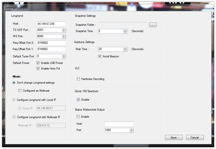 Das Streaming erfolgt an UDP Port 4003 bis 4200, ggf. müssen diese Ports an der HAMNET Anlage (Ubiquity, MikroTik...) an den PC mit dem Longmynd-Client geforwardet werden.
