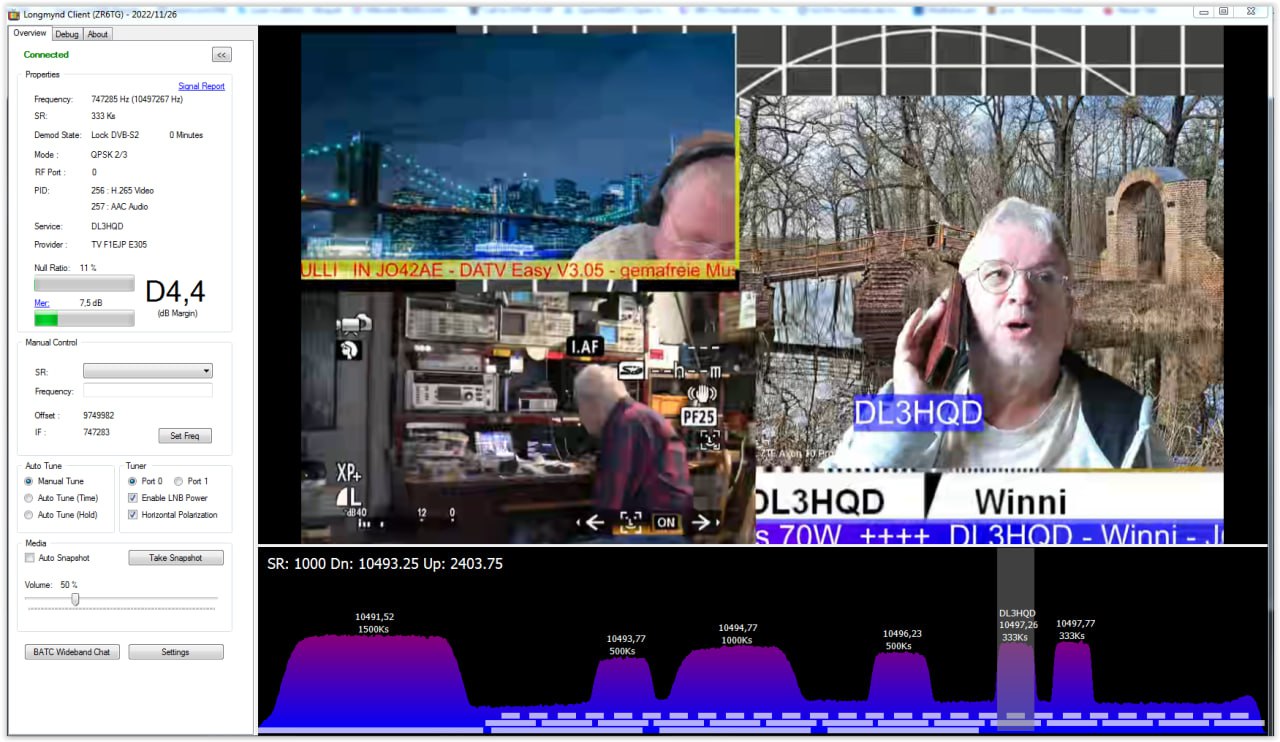 Der Videostream wird dann via HAMNET verteilt. Hierzu ist die Installation des Longmynd-Client (siehe Download-Bereich) erforderlich.